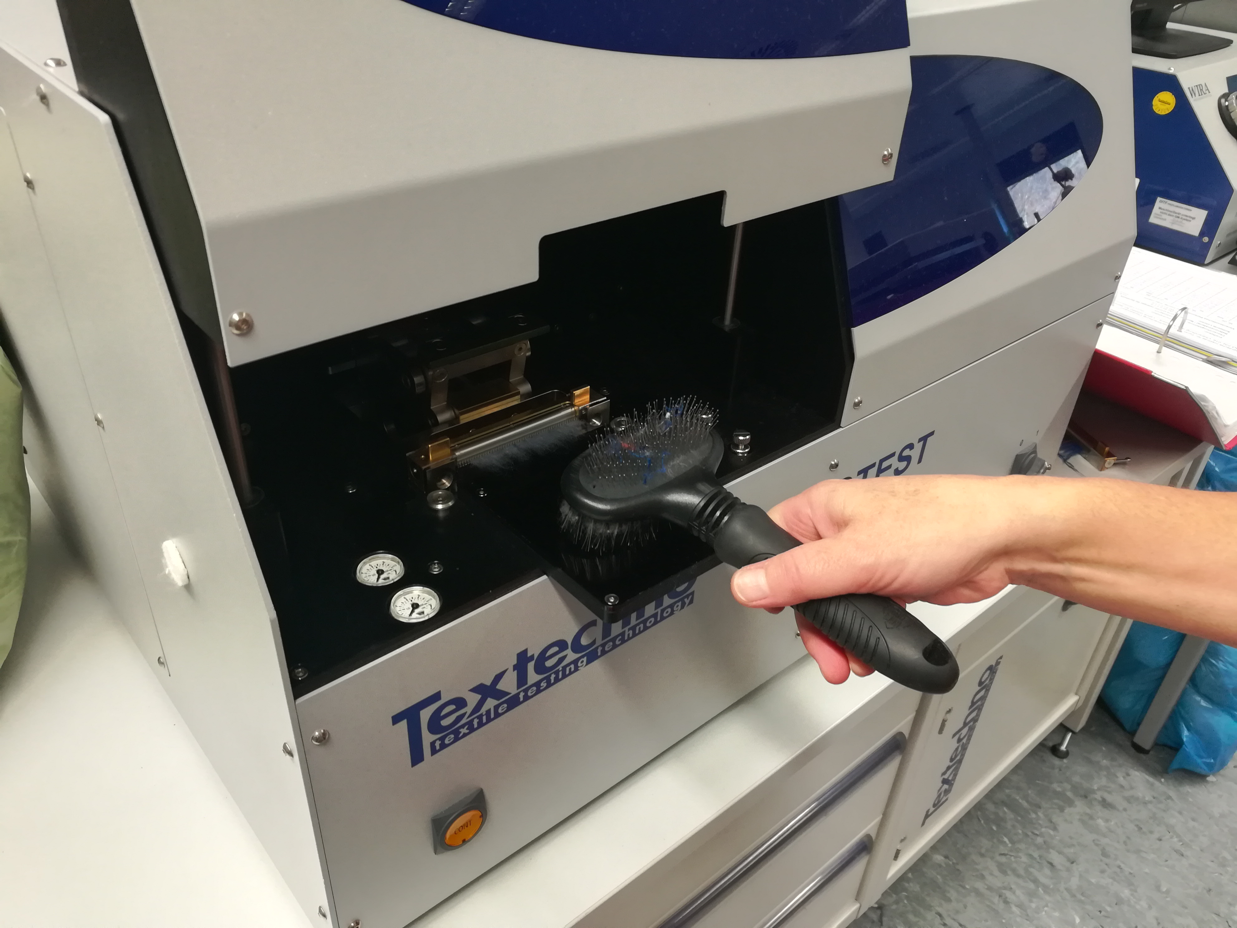 Am Anfang des Recyclingprozesses steht das mechanische Reißen, bei dem die Alttextilien zerkleinert werden. In den meisten Fällen schädigt die Prozedur die Fasern. Einzelne Fasern geraten zu kurz, was den anschließenden Spinnprozess erschwert. Um die Reißmaschinen optimal einstellen zu können, wurden nach dem Reißen die Fasern klassifiziert. Dazu haben die Forscherinnen und Forscher eine neue Prüfroutine entwickelt, die mit einem speziellen Messgerät durchgeführt wurde. Die Faserlänge ist der wichtigste Parameter für die Weiterverarbeitung der Fasern und für die Qualität des fertigen Garns aus Recyclingfasern. Garnstücke, die sich noch im gerissenen Material befinden, sind immer länger als die Fasern selbst und verfälschen dadurch die Faserlängenmessung. Durch den Prüfaufbau können noch vorhandene Garnstücke nahezu ohne weitere Fasereinkürzung aufgelöst werden. Somit ist eine exakte Messung der Faserlängenverteilung des gerissenen Recyclingmaterials möglich.