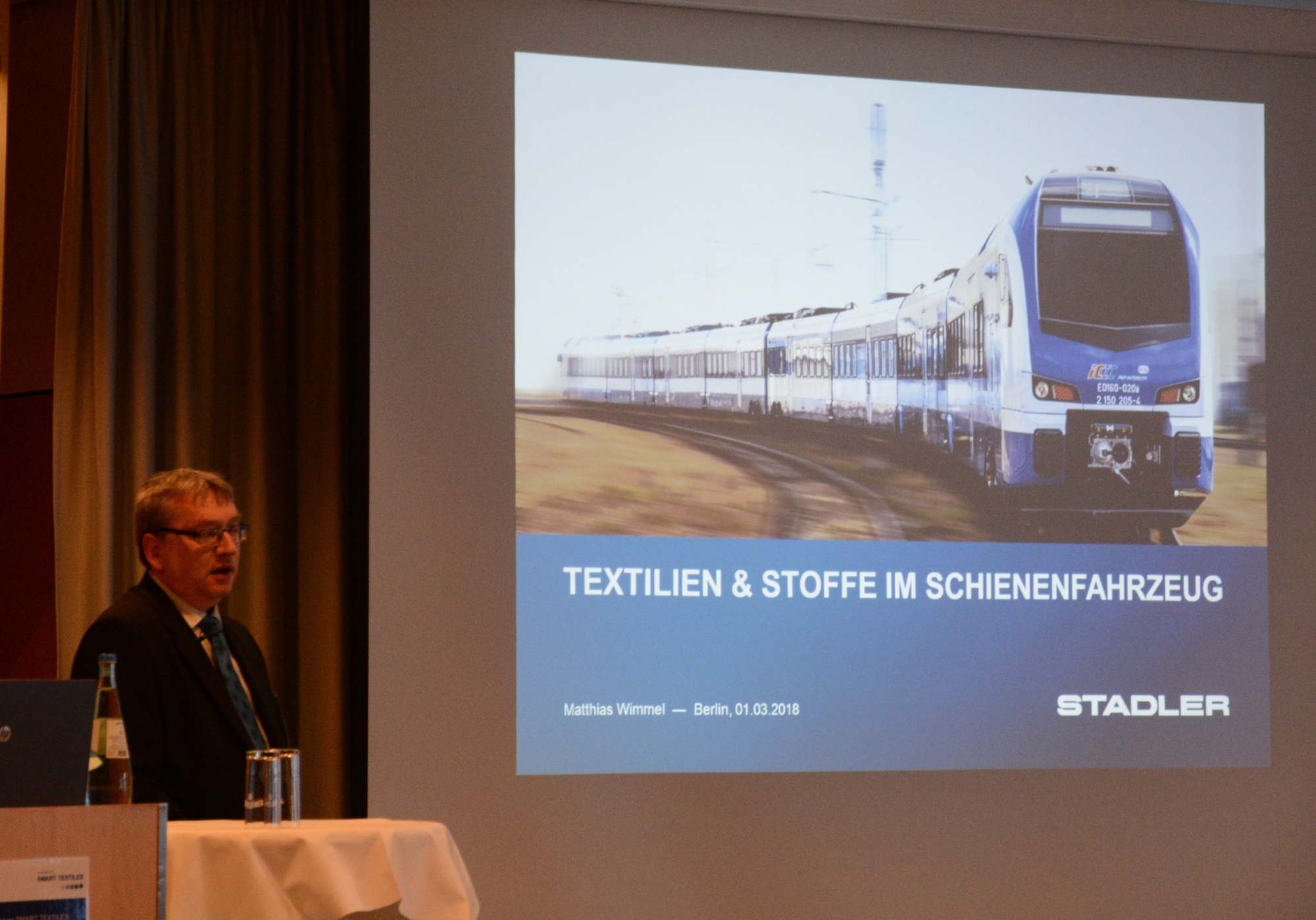 In die Welt der Schienenfahrzeuge führte das 6. Anwenderforum SMART TEXTILES die 160 Teilnehmer, die zu 70 % aus der Industrie kamen. Die eindrucksvolle Führung durch die Montagehallen der Stadler Pankow GmbH, des deutschen Ablegers der erfolgreichen Schweizer Stadler Railgroup in Berlin, zeigte, dass Individualität und Qualität bei Schienenfahrzeugen zum Erfolg führen.