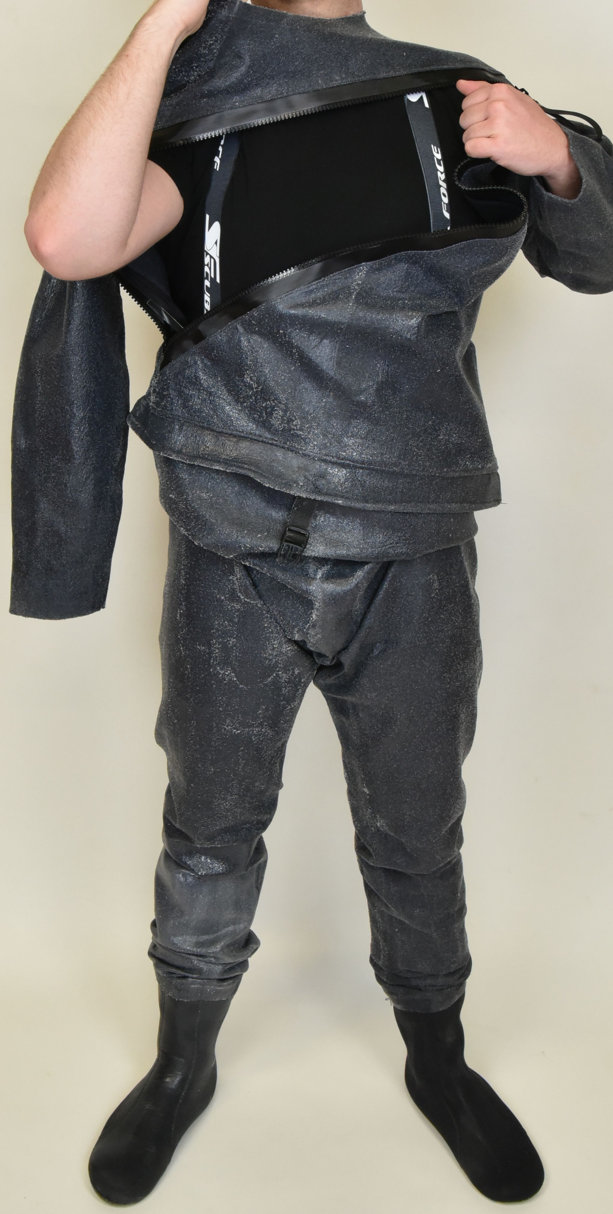 Eine weitere Neuheit ist die Integration eines schräg verlaufenden Reißverschlusses. Dieser erleichtert das An- und Ausziehen des Schutzanzugs. Während dies bislang nur mit Hilfe einer weiteren Person möglich war, kann der neue Anzug prinzipiell von der Einsatzkraft alleine angelegt werden. Vorbild für das neue Design sind moderne Trockenanzüge mit schräg verlaufendem, gasdichtem Reißverschluss.