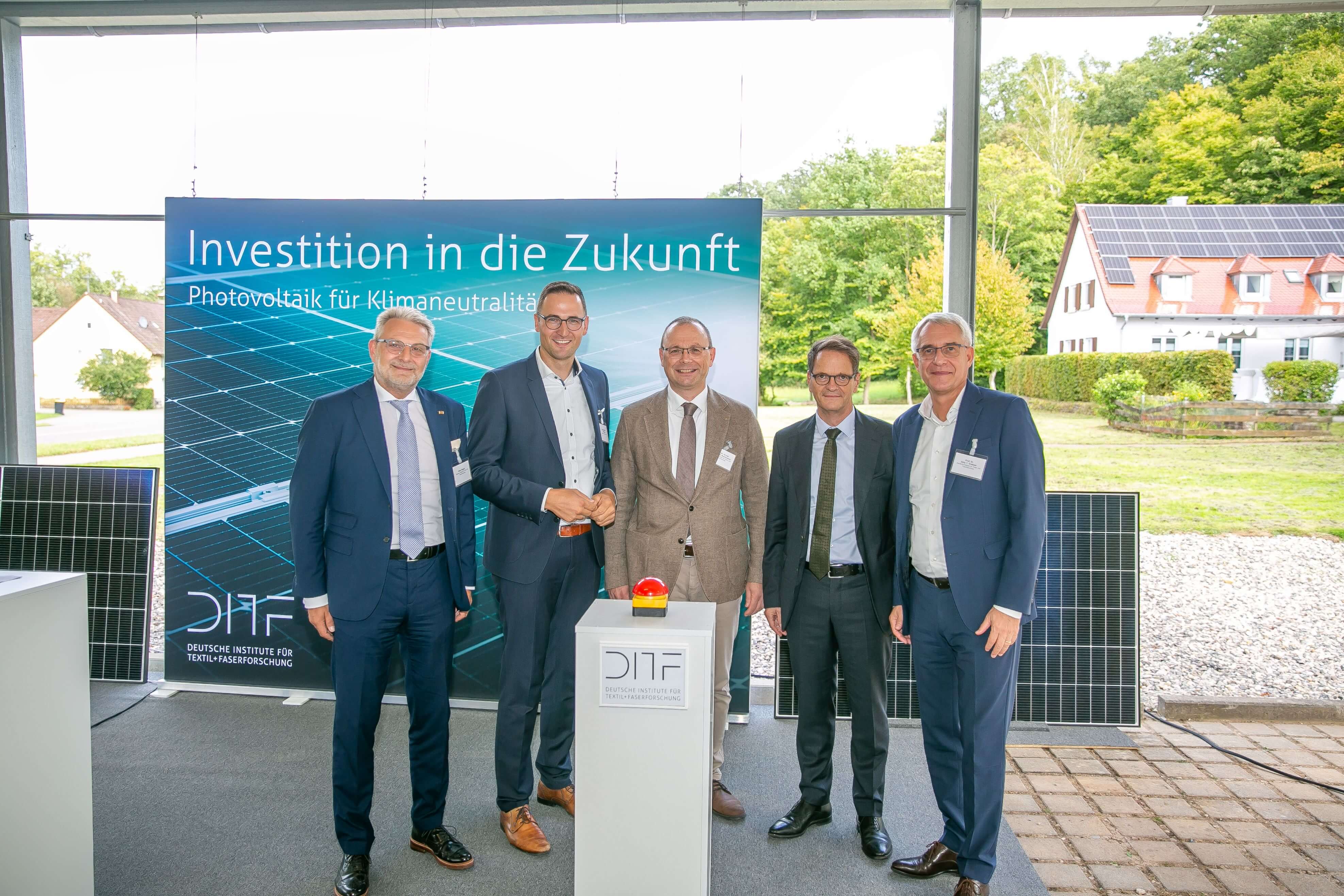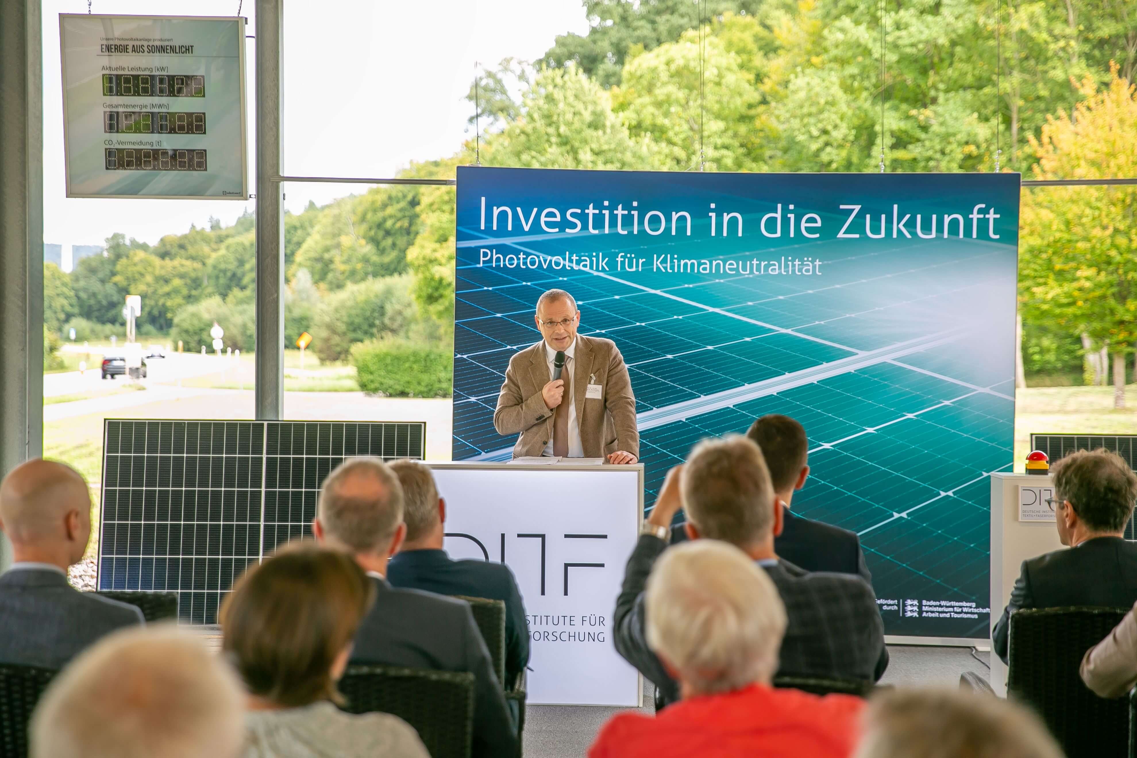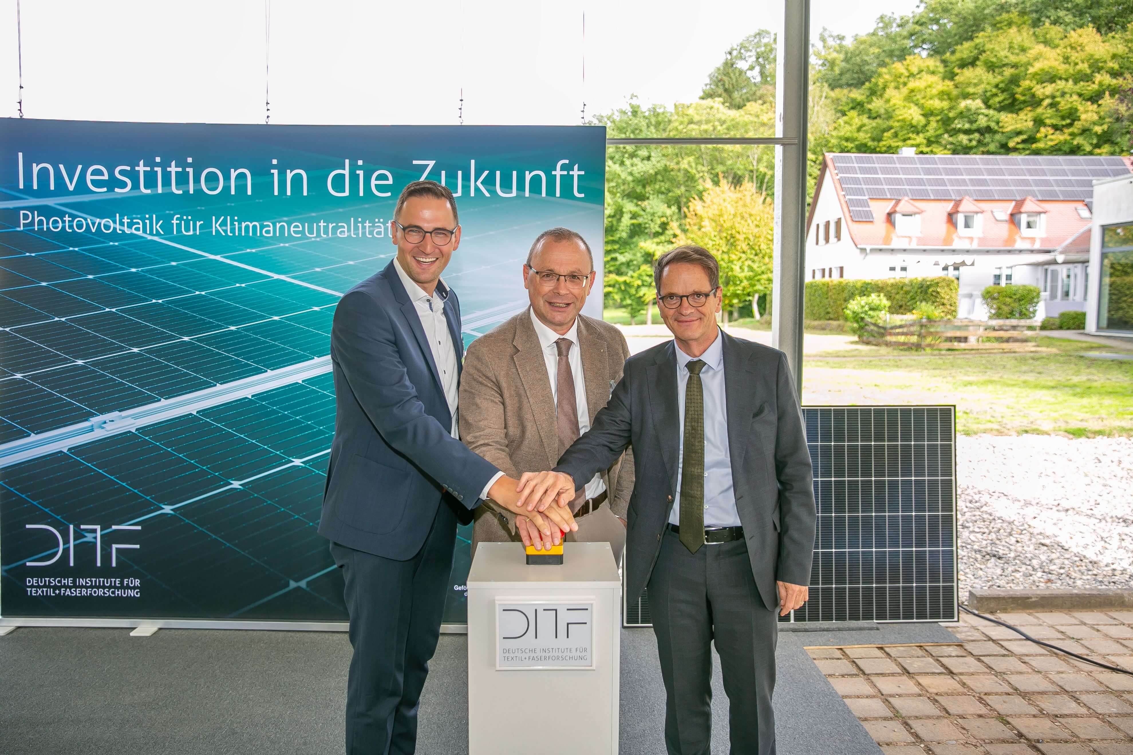 „Im Koalitionsvertrag für Baden-Württemberg ist angekündigt, klimaneutrale Einrichtungen der wirtschaftsnahen Forschung zu schaffen und damit bundesweit eine Vorreiterrolle einzunehmen. Mit einer Förderung von 1,4 Millionen Euro für die neue Photovoltaikanlage wollen wir einen entscheidenden Beitrag dazu beitragen“, unterstrich Michael Kleiner das Engagement des Landes. „Mit der heutigen Inbetriebnahme machen die Deutschen Institute für Textil- und Faserforschung einen weiteren wichtigen Schritt in Richtung Klimaneutralität – und unterstreichen ihre Vorbildfunktion für eine nachhaltige und effiziente Forschung.“