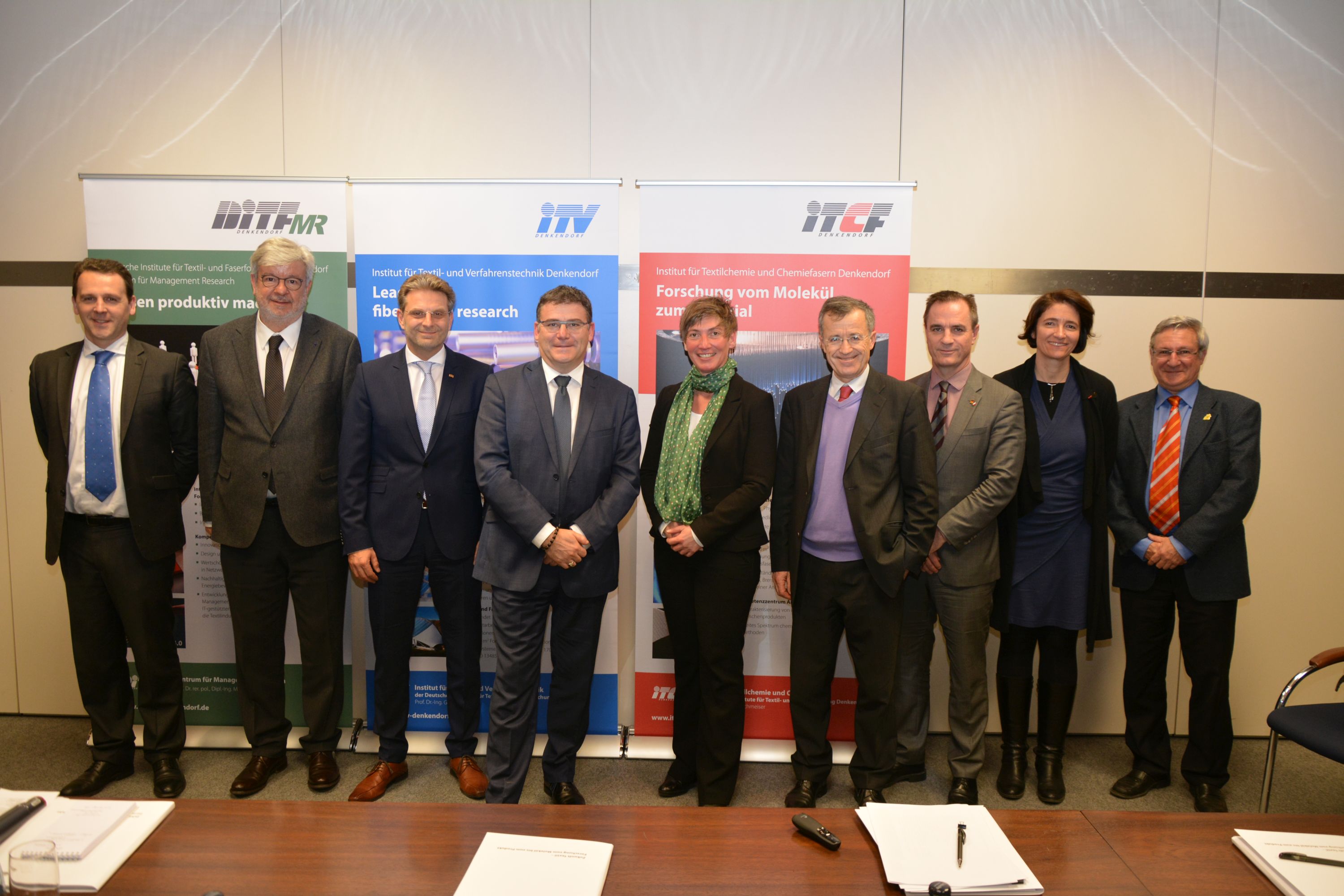 Vom Molekül bis zum fertigen Produkt: „An Europas größtem Textilforschungszentrum forschen entlang der gesamten textilen Produktionskette Maschinenbauer, Verfahrenstechniker und Chemiker ebenso wie Biologen, Kybernetiker, Informatiker und Wirtschaftswissenschaftler“ betonte DITF-Vorstand Peter Steiger bei seiner Begrüßung. Mit ihren Innovationen unterstützen die DITF vor allem kleine und mittelständische Unternehmen. Der Schwerpunkt liegt auf anwendungsbezogener Forschung im Bereich technischer Textilien.