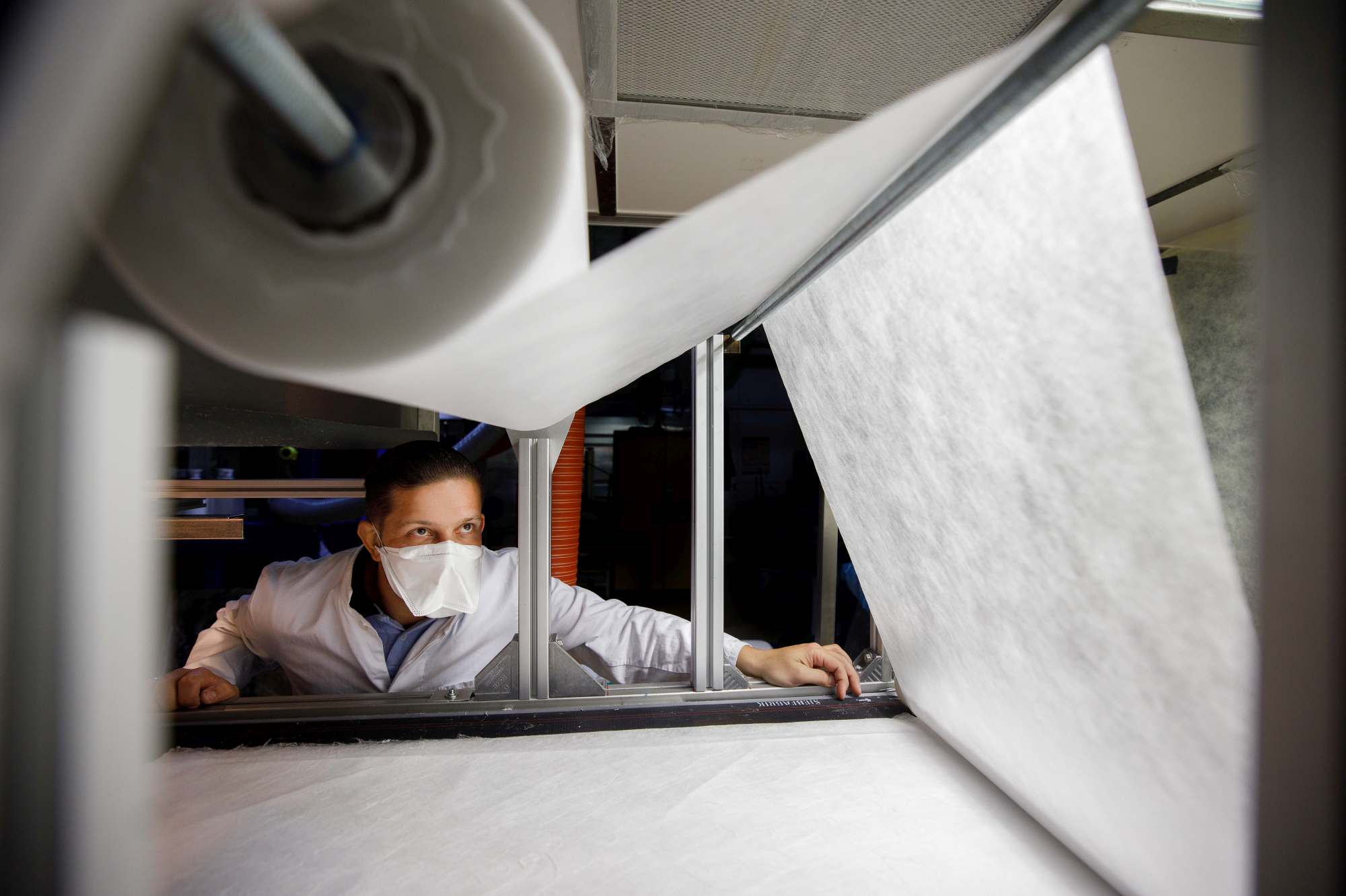 Vor allem zu Beginn der COVID 19 Pandemie konnten in Deutschland Ärzte, Pfleger, aber auch Einsatzkräfte bei der Feuerwehr und Polizei nicht ausreichend mit medizinischen Schutzmasken versorgt werden. Das Team des Kompetenzzentrums  Chemiefasern und Vliesstoffe an den DITF hat daraufhin in kürzester Zeit die für Forschungszwecke ausgelegte Meltblow-Anlage für die Produktion von hohen Stückzahlen umgerüstet. Das Material erreicht eine Aerosol-Abscheideleistung von über 95 Prozent.