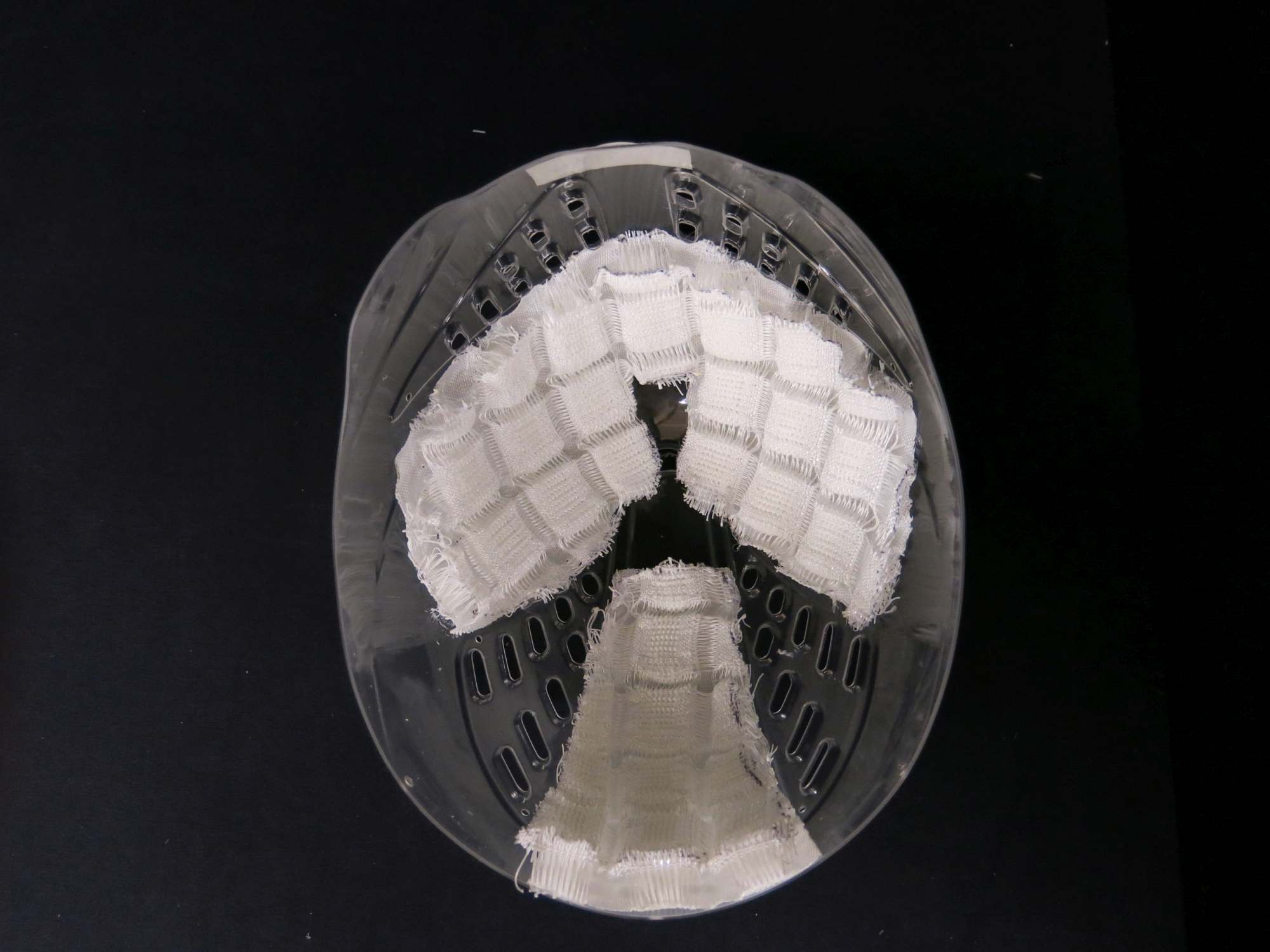 Im Bereich Kopfschutz verbesserte sich das Dämpfungsverhalten des Serienhelms durch die Verstärkung des EPS-Hartschaums mit einem Abstandsgewebe um bis zu 30 Prozent. Um das Befüllen des Abstandsgewebes mit EPS-Partikel direkt im Werkzeug des Schäumprozesses vornehmen zu können, wurde die obere Gewebelage des Abstandsgewebes bereits beim Weben mit zusätzlichen Gewebeöffnungen versehen.