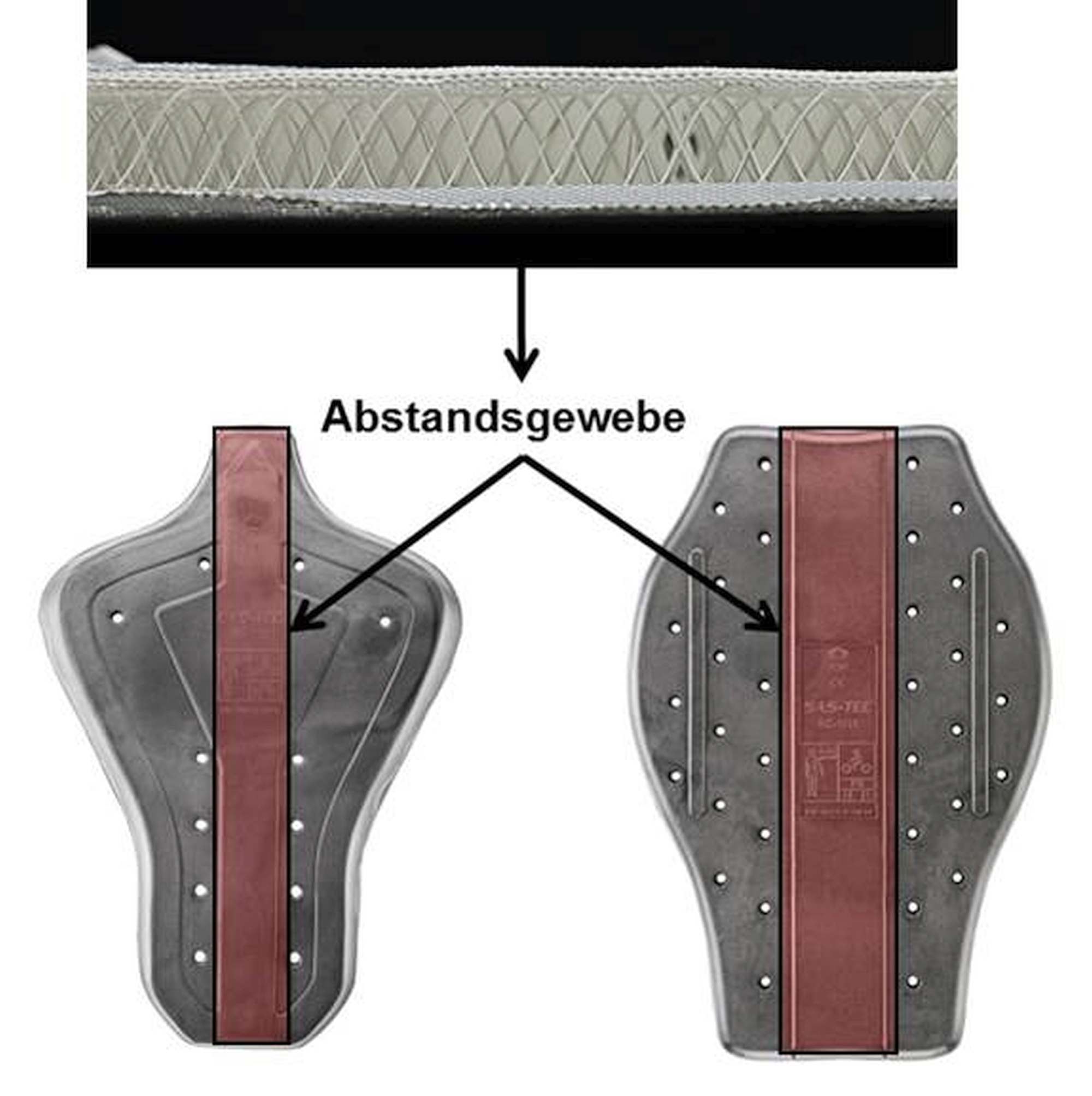 Im Bereich Rückenprotektor konnte das Temperaturfenster, in dem der Protektor gute Dämpfungseigenschaften zeigt, durch die Integration eines Abstandsgewebes in den Schaum deutlich vergrößert werden. Damit erfüllt der Protektor strengere Prüfnormen und erhält darüber hinaus durch ein Abstandsgewebe einen guten Durchdringungsschutz.
