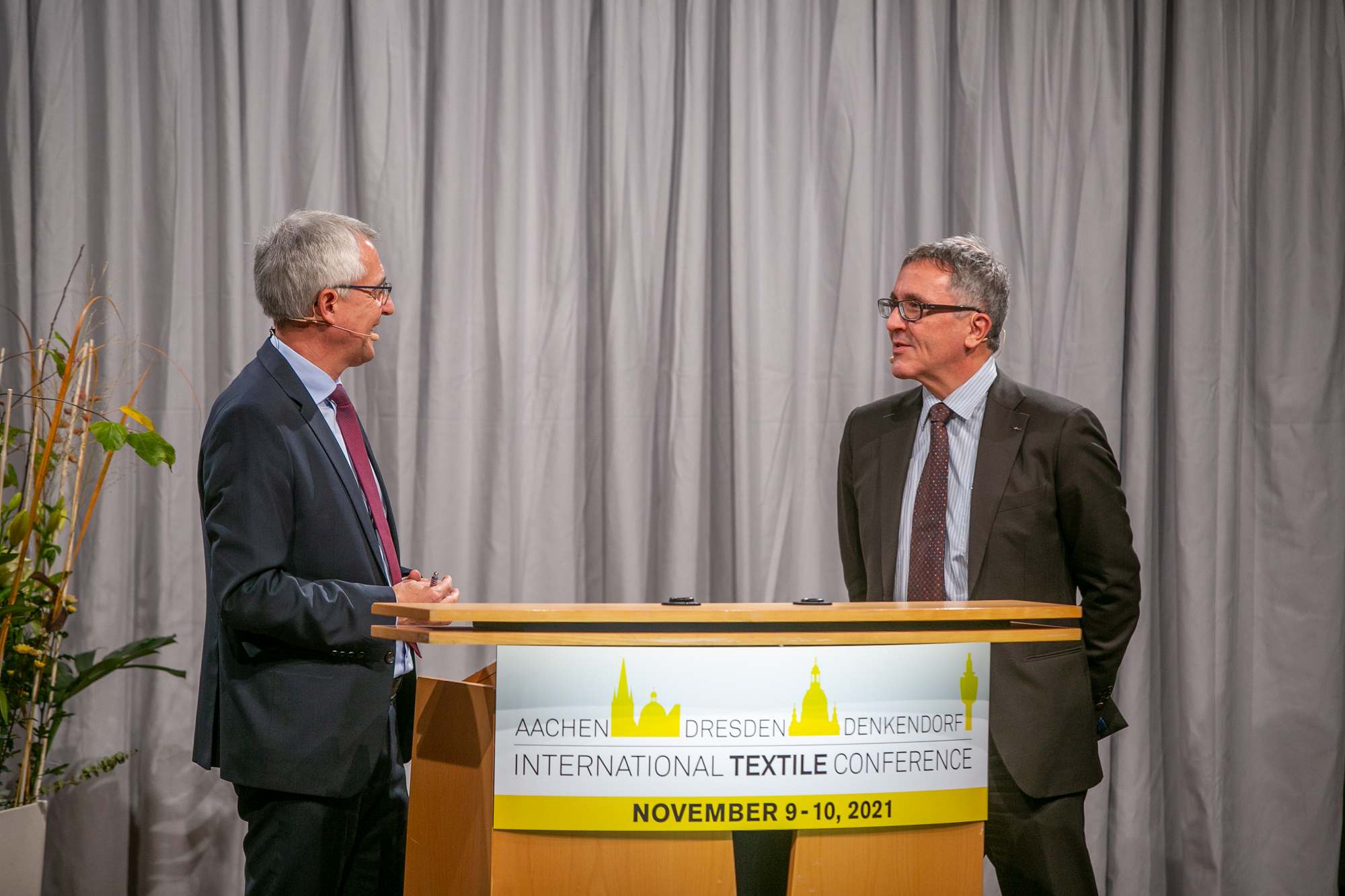 Über 60 Vorträge in Plenarsessions und drei Parallelsessions standen auf dem Programm. Expertinnen und Experten aus Wirtschaft und Forschung berichteten über Forschungsergebnisse und marktfähige textile Innovationen in den Bereichen Hochleistungsfasern, Faserverbundwerkstoffe, Medizintextilien, der Funktionalisierung und im Textilmaschinenbau. Die Themen der Konferenz standen im Zeichen der Umbrüche, die durch die digitale Transformation und die Anforderungen einer nachhaltigen Kreislaufwirtschaft von der Textilindustrie bewältigt werden müssen.