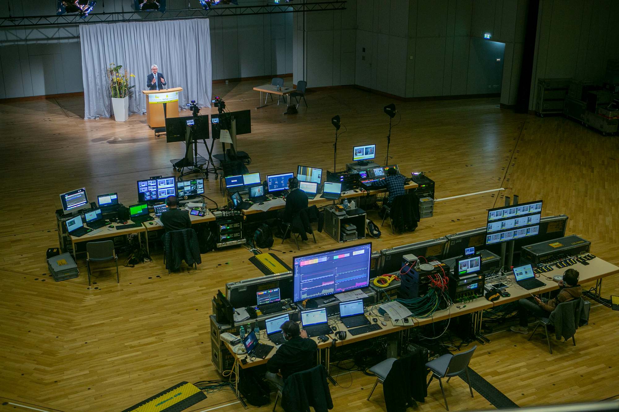 Etwa 20 Technikerinnen und Techniker und sechs Dolmetscherinnen und Dolmetscher waren im Einsatz, um die Vorträge und Diskussionen in alle Welt zu übertragen. Die nächste ADD International Textile Conference wird wieder wie gewohnt als Präsenzveranstaltung stattfinden. Am 1. und 2. Dezember 2022 lädt das DWI nach Aachen ein.