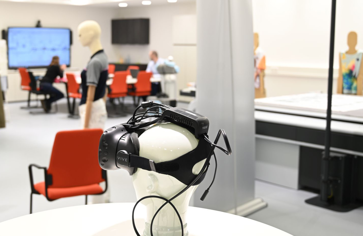 Die digitale Welt durchdringt die gesamte Prozesskette und ermöglicht die effiziente Herstellung von Kleinserien bis hin zur Stückzahl 1 sowie neuartige Produkte und Geschäftsmodelle. Die wissensintensive Wertschöpfung textiler Produkte muss sich dabei auf umfassende Modellierung und Simulation stützen. Eine wichtige Schnittstelle ist die Mensch-Maschine-Interaktion, die an den DITF auf breiter Basis weiterentwickelt wird.