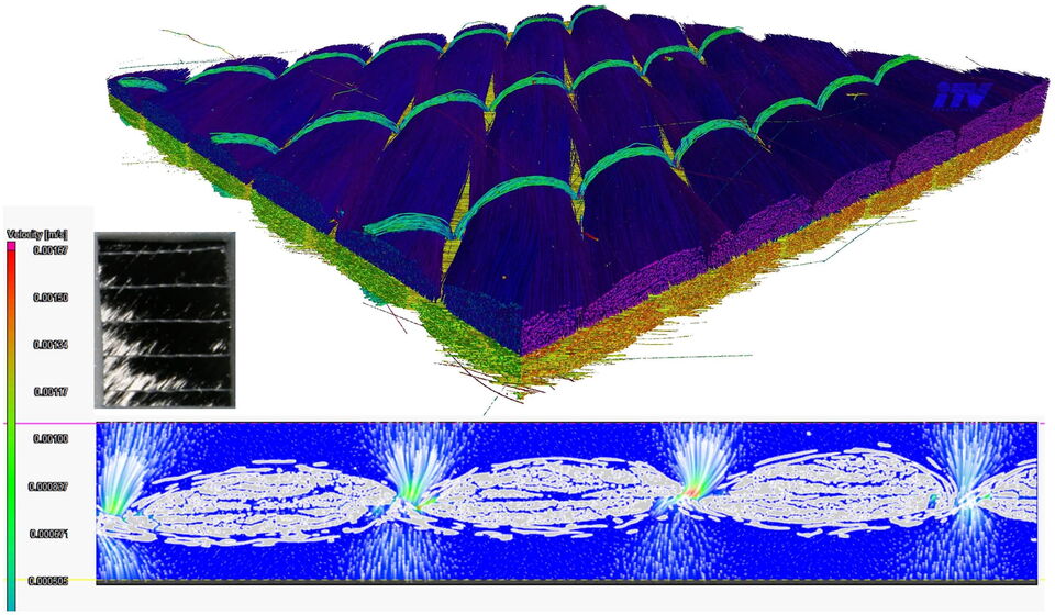 Die spezielle Prüf- und Messausstattung zur Materialanalyse, Kennwertermittlung und Validierung der numerischen Simulation (z.B. Mikro-Computertomographie mit insitu-Belastungsvorrichtung, Particle Image Velocimetry, berührungslose Dehnungsmessung ARAMIS, High-Speed Kameras, Fallprüfstand) sind unverzichtbare Vorteile des Bereichs Simulation des DITF Kompetenzzentrums „Stapelfaser, Weberei und Simulation“.