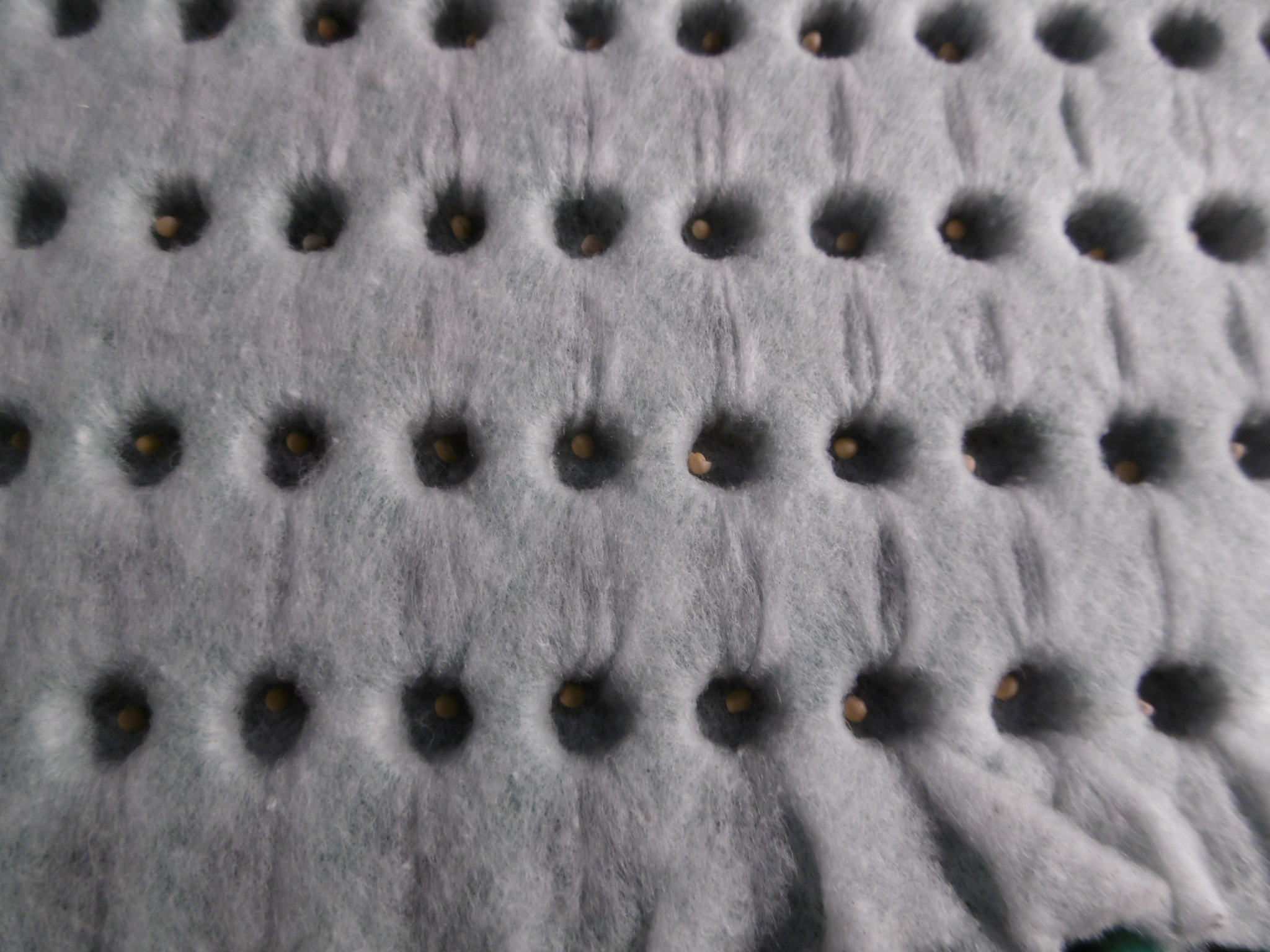 Als Material wurde nach umfangreichen Tests ein Baumwollvlies ausgewählt, dessen Textilstruktur schnell nachgibt, wenn der Keimling nach außen und an die Oberfläche drängt.