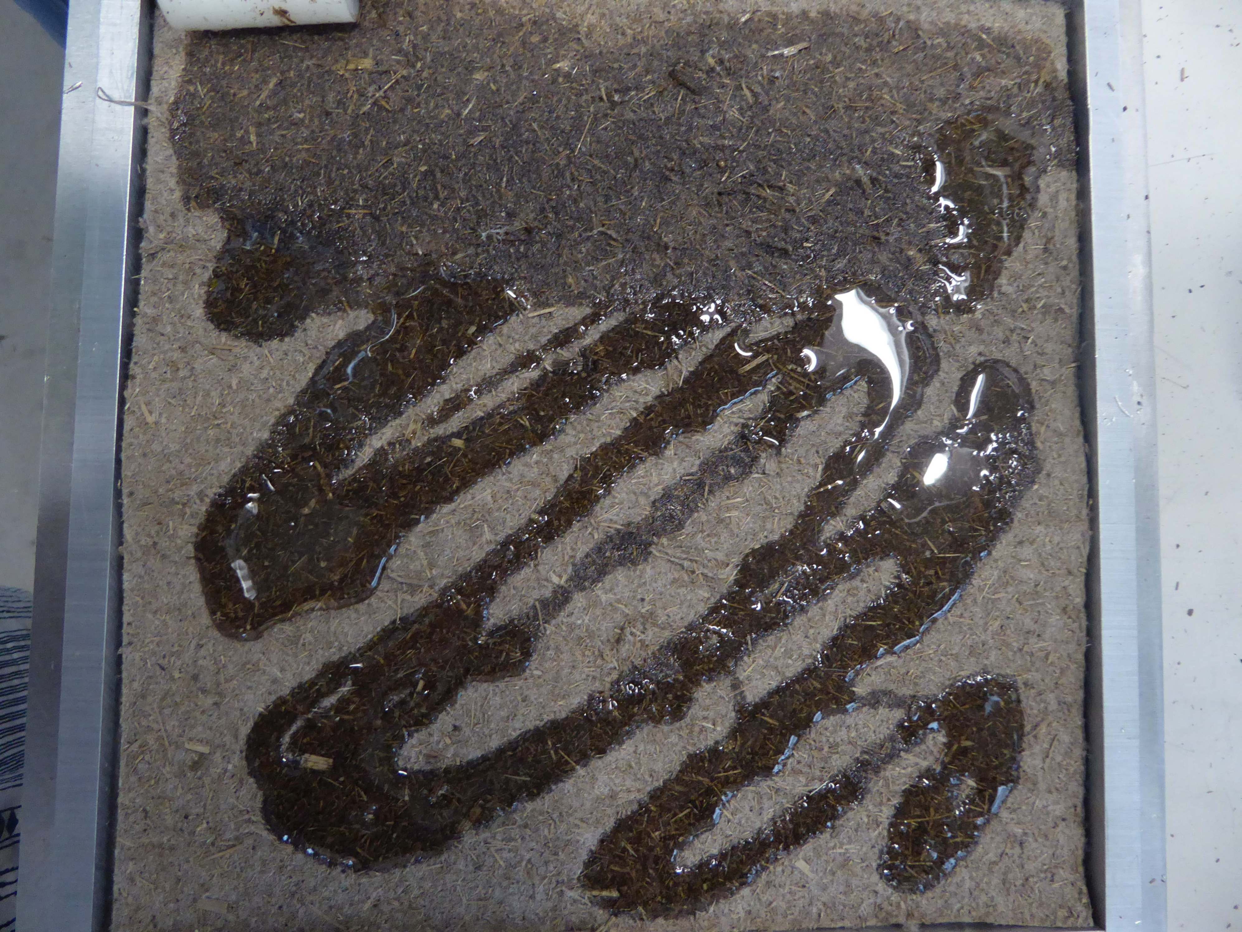 Laminates are in great demand in the furniture industry because they can be designed very flexibly. The composite material made from biogas digestate developed at the DITF with their project partners is a particularly sustainable variant. To produce it, these plant-based residues are first cleaned in an environmentally-friendly way. From this mass, the DITF and Reutlingen University have developed a wet laid nonwoven that is pressed together with a bio-based resin system to form a composite material. It is load-bearing and can be processed in a variety of ways. The project group has created an initial demonstrator from the material.