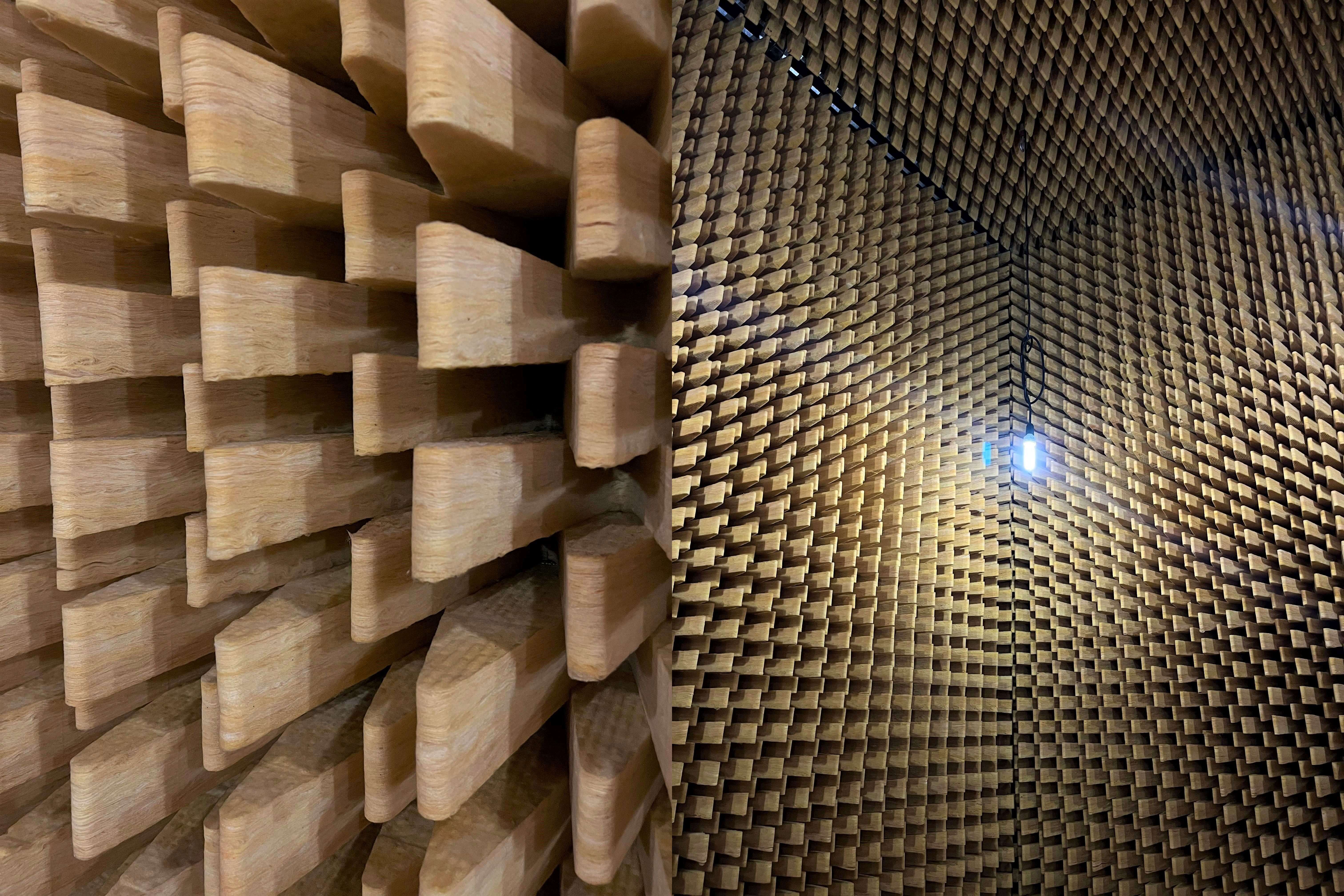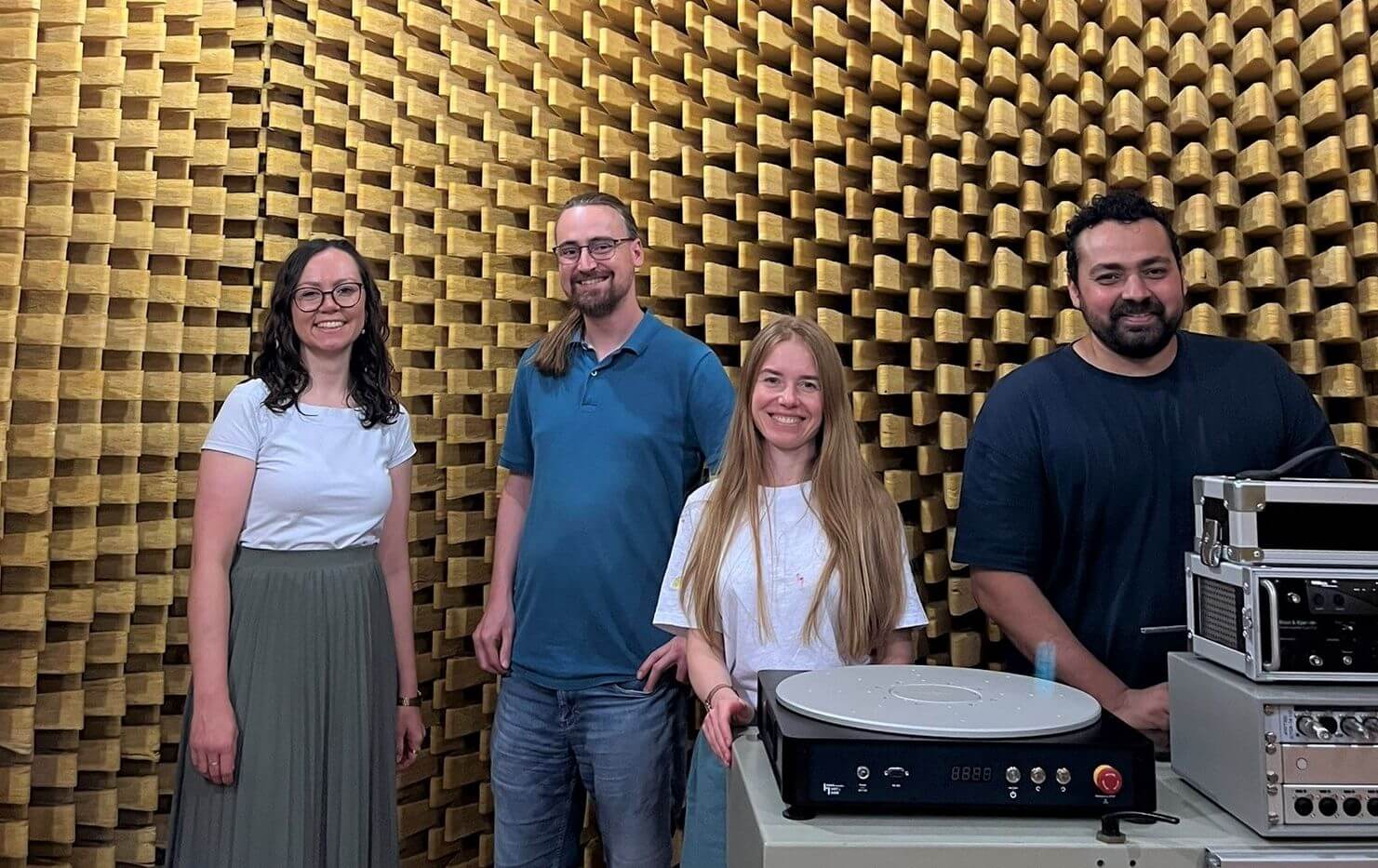 In addition to the development of new measurement methods, the acoustics laboratory at the DITF is being expanded. The measuring room with sound-absorbing walls and a sound-reflecting floor (semi-anechoic chamber) will be equipped with a modern data acquisition system. In addition to software, this includes various measuring microphones, loudspeakers, and a turntable to measure the sound quality of loudspeakers from different directions. The new acoustics laboratory will be used for research at the institute and will also be made available to industry for testing.