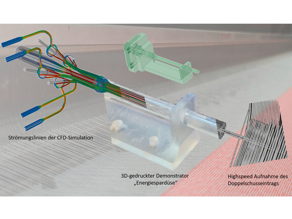 The energy-saving jet offers new opportunities for competitive textile production in Germany with energy savings of over 12.1 percent, stable weft insertion, double weft capability and low-cost reeds. An additional plus point: the nozzle can also be used for existing weaving machines without major conversion.