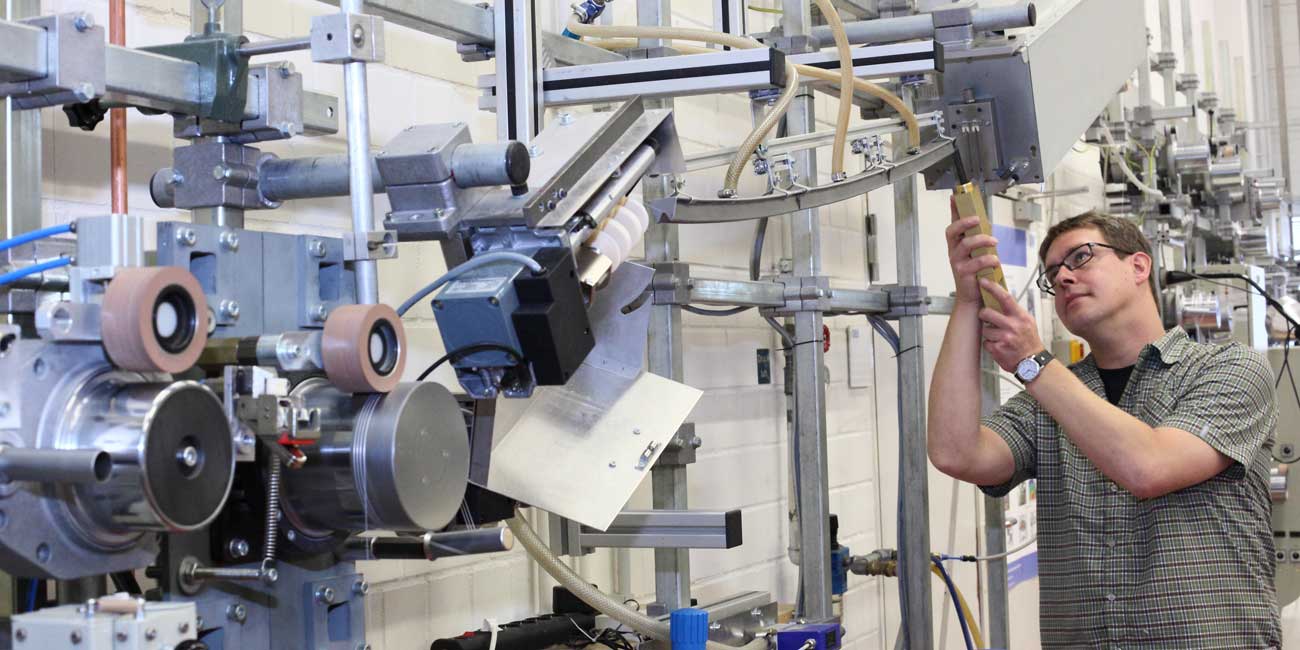 Properties such as tensile strength, elongation, shrinkage and filament cohesion are adjusted purposefully. Texturized yarns are also given defined crimp and elasticity. Commingling- or hybrid-yarns are developed by combining filament yarns with different property profiles. For fiber composite technology, the DITF are working on new technologies for spread tows and thermoplastic fiber composite tapes.